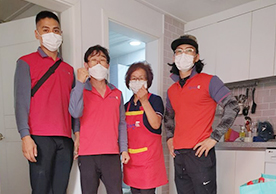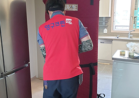 영구크린 도장차량, 박스자재, 아이스박스, 각종 커버자재 등 기본적으로 갖추어야 할 항목들을 잘 지키고 있었습니다. 유니폼을 맞춰 입은 팀원 사진을 포함하여 바닥 보강 등 전반적으로 좋은 품질의 지역점이었습니다.