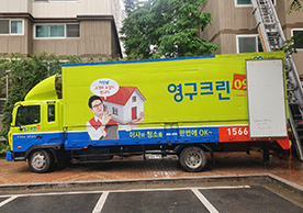영구크린 도장차량, 박스자재, 아이스박스, 각종 커버자재 등 기본적으로 갖추어야 할 항목들을 잘 지키고 있었습니다. 유니폼을 맞춰 입은 팀원 사진을 포함하여 전반적으로 좋은 품질의 지역점이었습니다.