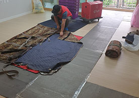 작업 사진, 바닥 보강, 도장 차량, 포장 자재 등