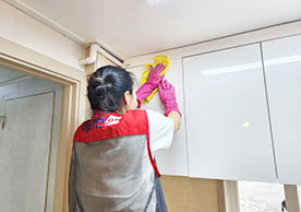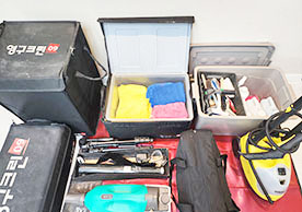장비와 소모품들을 잘 정리정돈 하여 깔끔하게 청소를 진행하는 모습이 보기 좋았습니다.