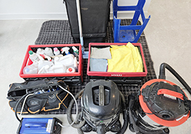 장비와 소모품들을 잘 정리정돈하여 깔끔한 모습으로 청소서비스를 진행하는 모습이 보기 좋았습니다.