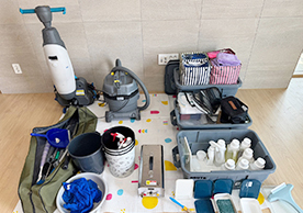 마루세정기를 활용한 바닥청소와 고압 스팀청소기를 이용한 청소는 전문적인 청소현장을 보여주기에 부족함이 없었습니다.