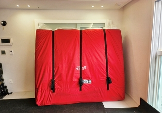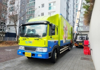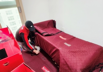 영구이사 전용차량 및 전용자재 사용 이중 비닐포장 및 바닥보강, 덧신 착용 양호