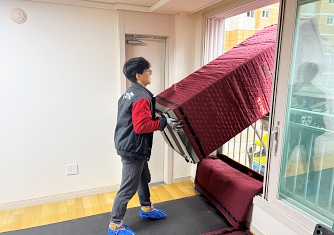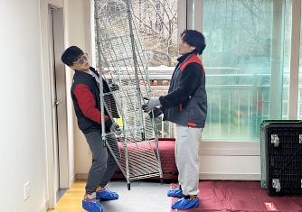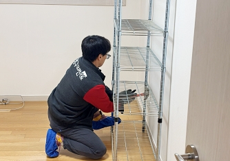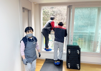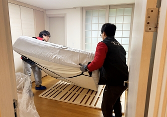 영구이사 전용차량 및 전용자재 사용 이중 비닐포장 및 바닥보강, 덧신 착용 양호