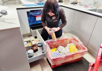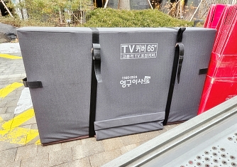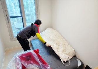 영구이사 전용차량 및 전용자재 사용 이중 비닐포장 및 바닥보강, 덧신 착용 양호 ▶ 개선 필요 사항 - 커버포장 N자 완성도 미흡