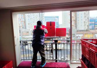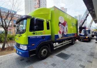 영구이사 전용차량 및 전용자재 사용 이중 비닐포장 및 바닥보강, 덧신 착용 양호 ▶ 개선 필요 사항 - 커버포장 N자 및 간격 완성도 미흡