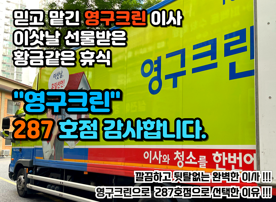 있는 날이 되시길 바라며, 영구크린 287호점과 함께한 이삿날 이야기입니다.