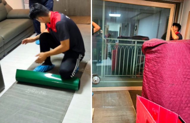 자~ 드디어 기다리던 이사가 시작되고, 먼저 이사나갈 정든집 바닥 상하지 않게 꼼꼼하게 바닥통로마다 바닥작업을 해주시고 이사가 시작되었습니다.