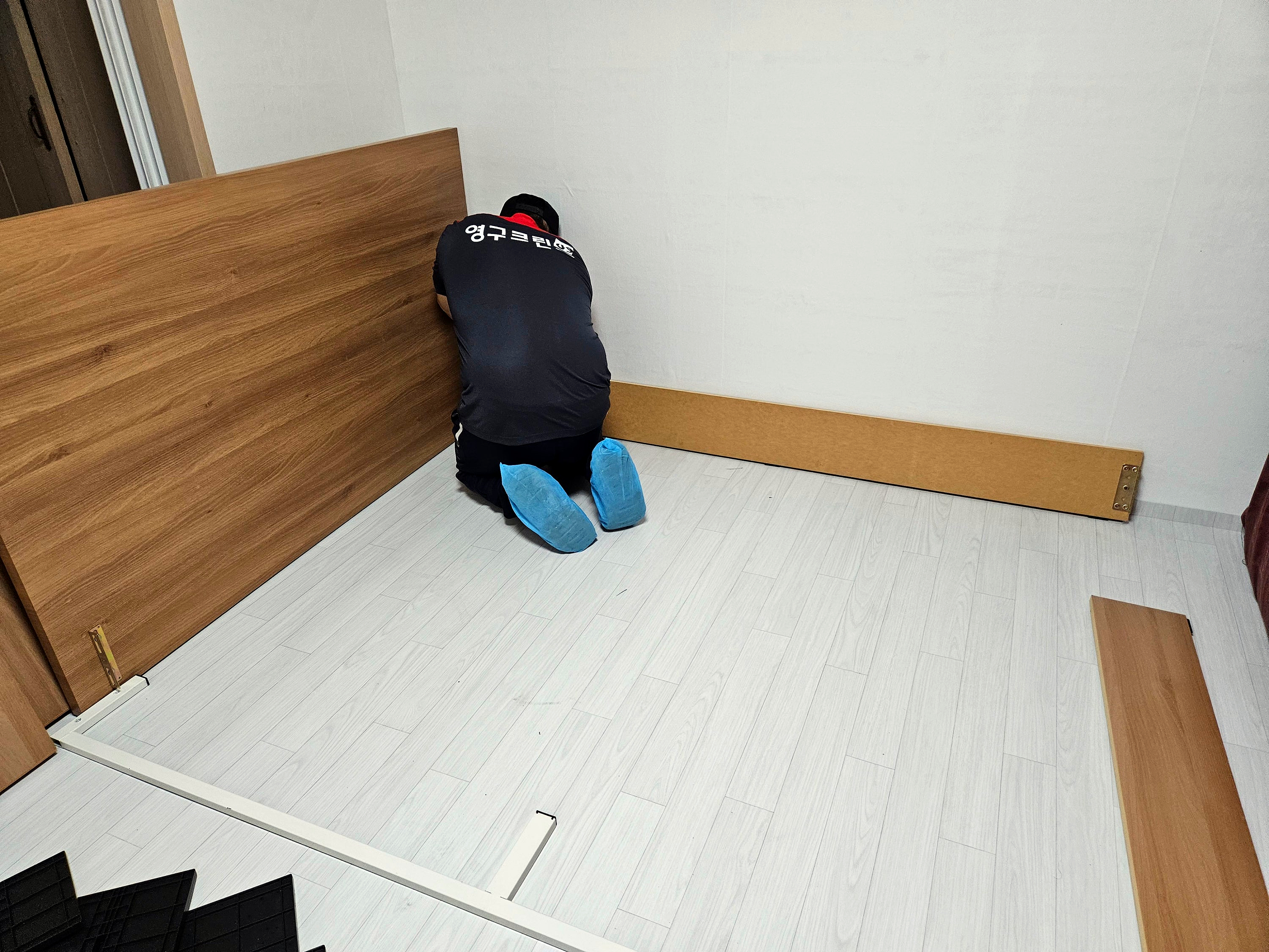 그 사이에 이모님은 바닥보호를 위하여 미리 깔아둔 부분이 떨어진 것을 보시고 어른 오셔서 추가 하시는 그 섬세한 배려에 두번째 감동!