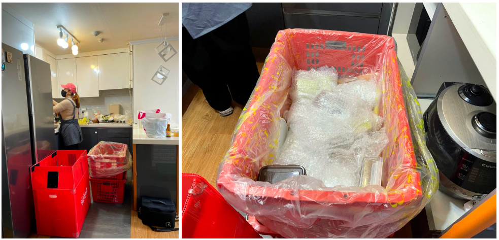 거실을 담당하시는분과 방을 담당하시는 분께서 거실에서는 소파포장이, 방에서는 침대 분리와 나머지 짐 정리가 시작되고, 주방에서는 주방담당 여사님께서 진행하시니