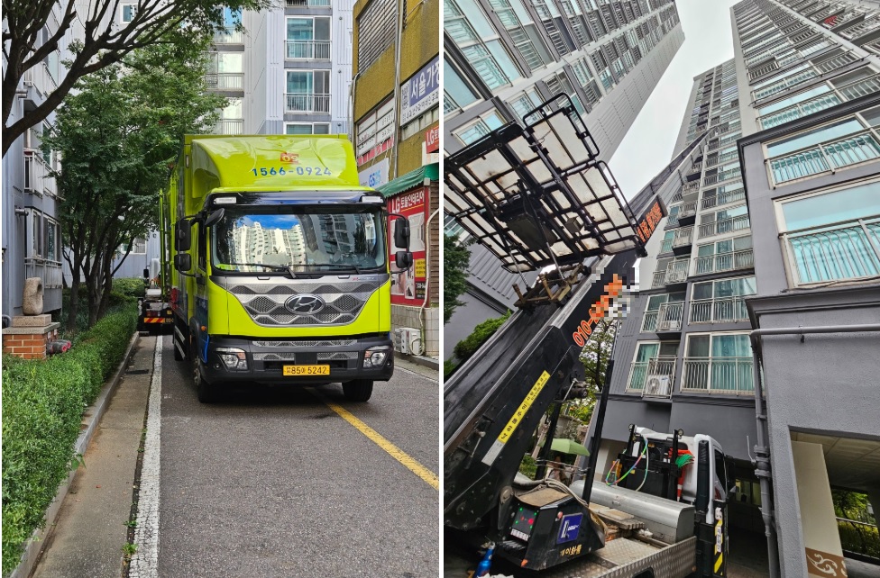 이사할 집으로 이동 후 사다리차를 설치하실 때도, 주위에 위험한 거는 없는지, 다른 주민분들 피해갈 것은 없는 지.. 모두 확인하시고 이사 시작!