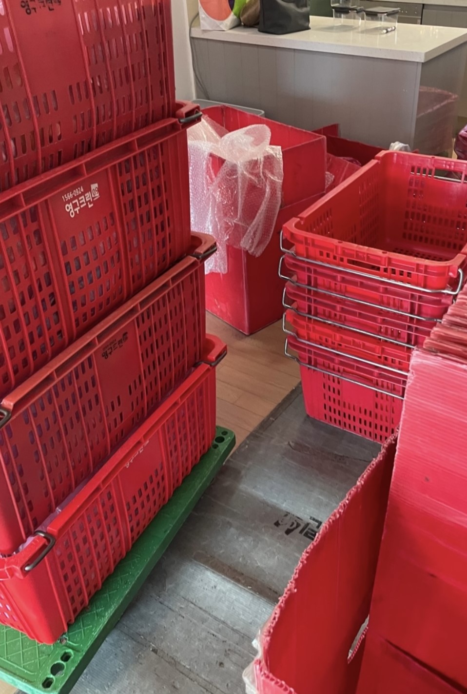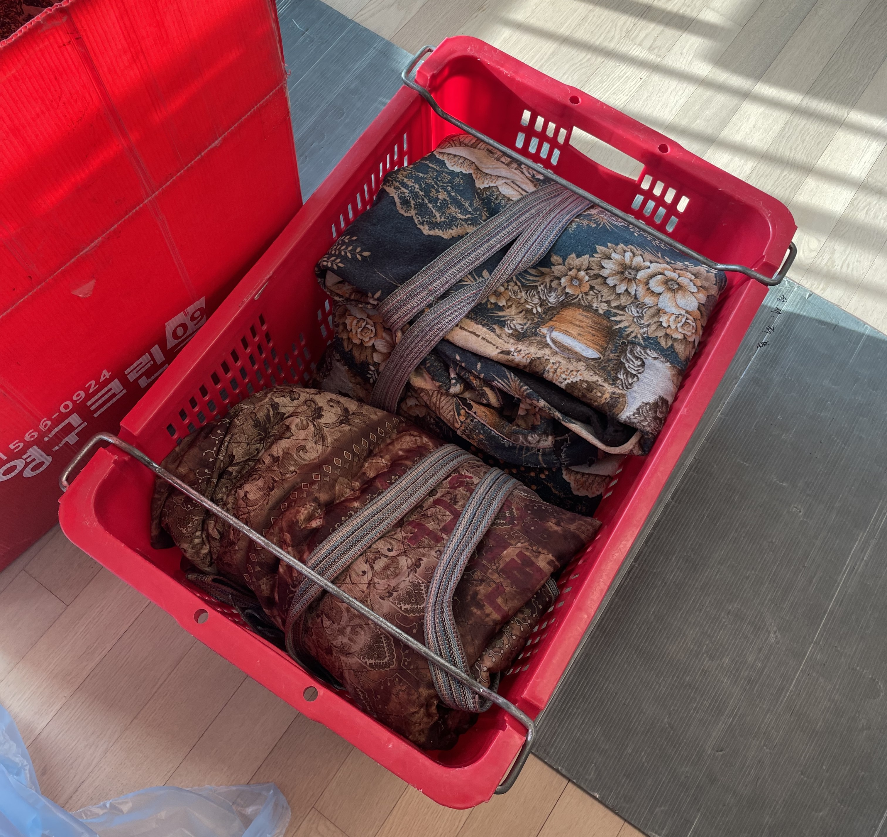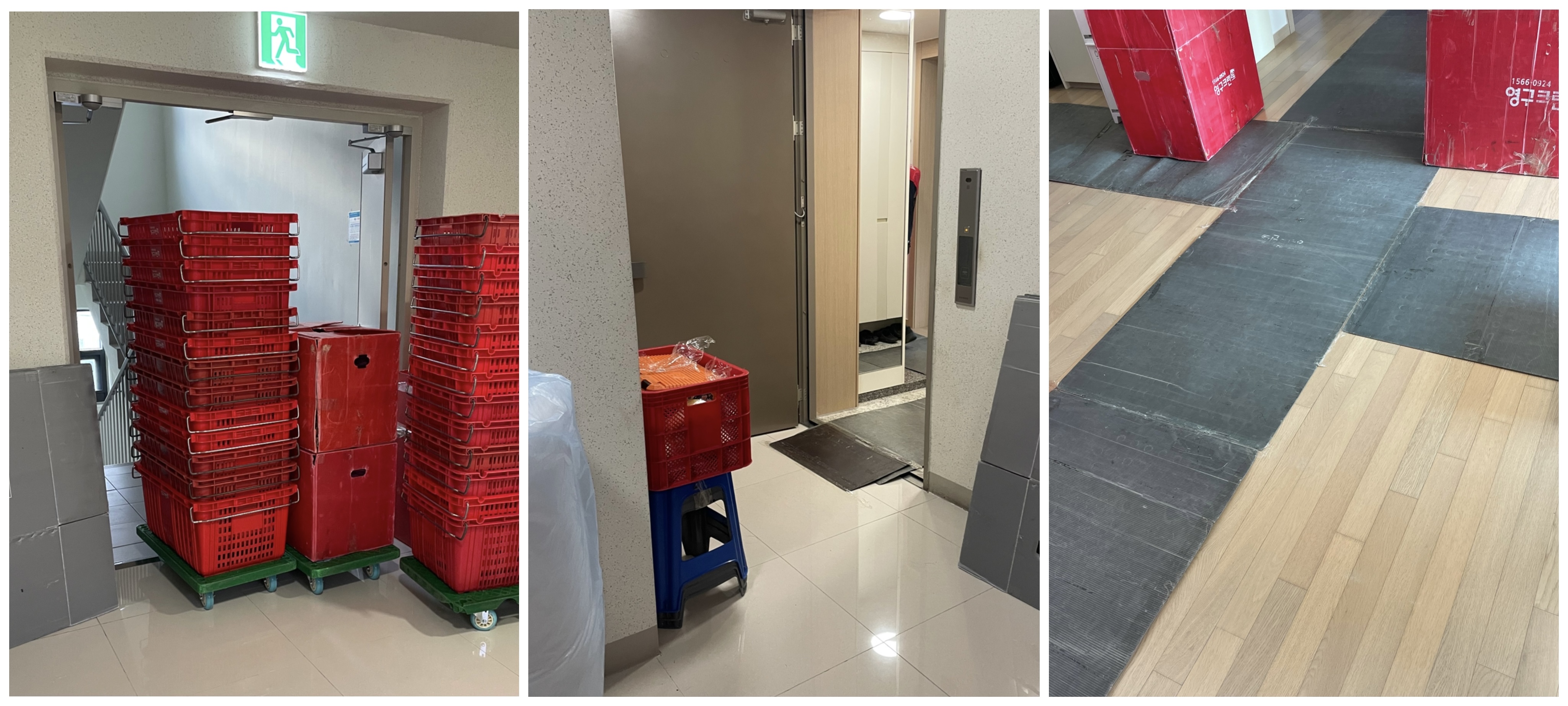 당일 아침 8시쯤 시간 맞춰서 점장님 포함 팀원분들까지 일찍 와주셨고, 미리 설명할 것도 없이 직원분들께서 알아서 일사불란하게 움직이며 작업해 주셨습니다. 들고 와주신 수많은 이삿짐 바구니, 박스, 보호캡, 가전 전용 보호장비 등을 보니 아주 든든하였습니다. 크고 무거운 가전가구들을 옮길 때 바닥에 기스가 나지 않도록 바닥에도 판자들을 잘 깔아주셨어요! (이사간 집도 마찬가지)