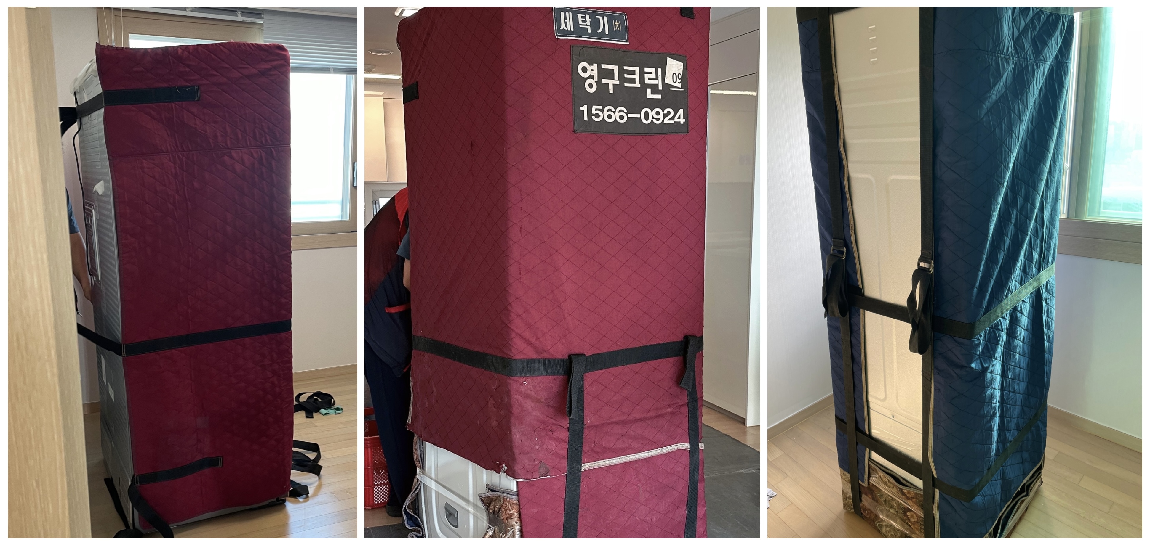 포장 작업이 시작되었고, 크기가 큰 냉장고, 워시타워, 에어드레서를 안전하게 포장해 주십니다.