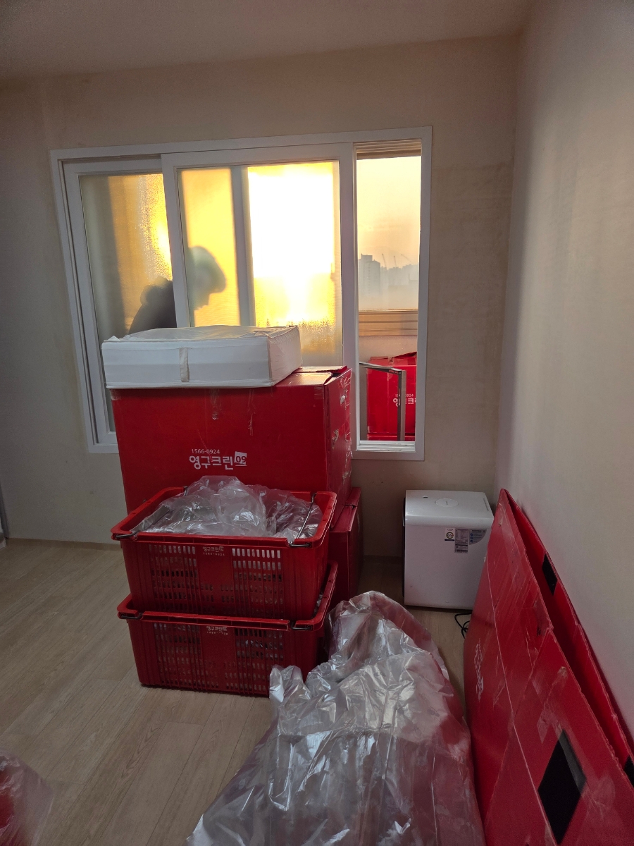 이사는 오전 8시에 시작해서 대부분 짐 다 싸두고 냉장고, 에어컨 중고로 팔아서 가전제품도 거의 없었고