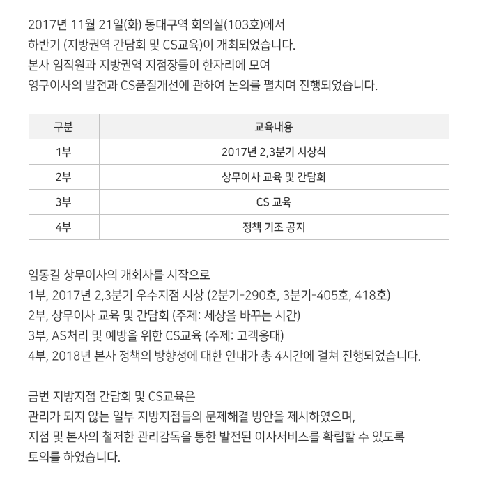 2017년 11월 지방지점 간담회 & CS교육