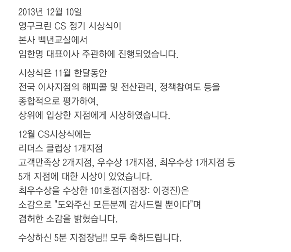 2013년 12월 CS정기 시상식