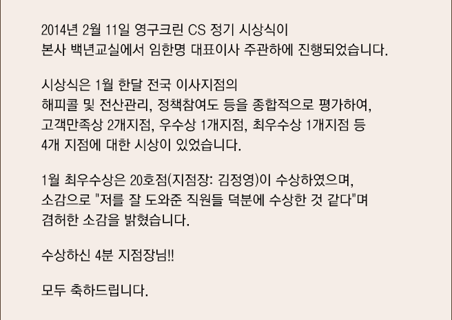 2014년 2월 CS정기 시상식