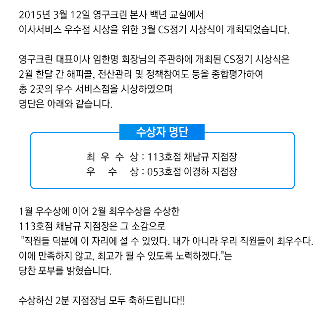 2015년 3월 CS정기 시상식
