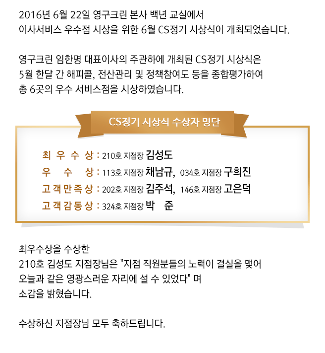2016년 6월 CS정기 시상식 결과 안내
