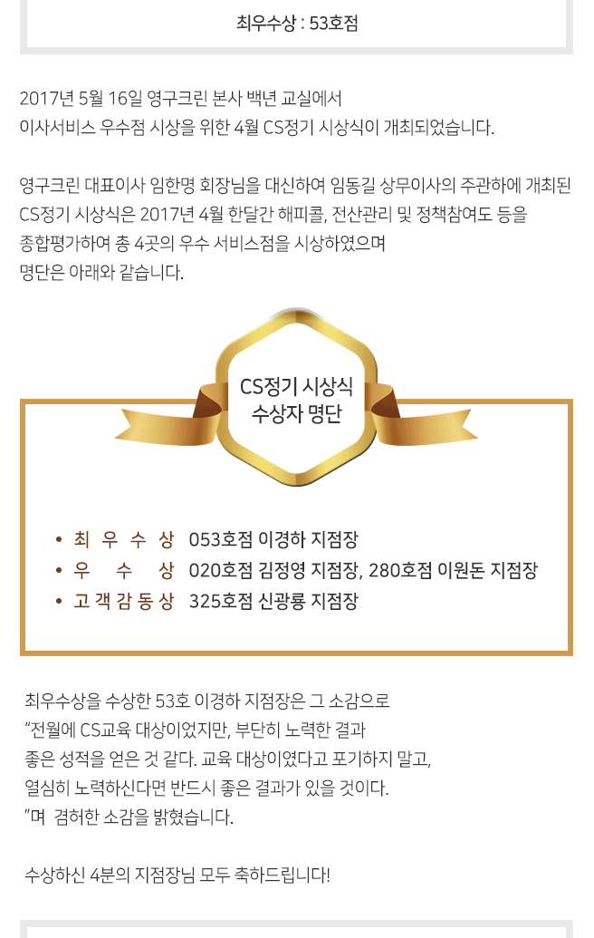 2017년 5월 CS정기 시상식 결과 안내